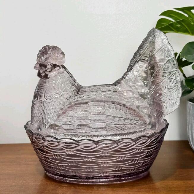 Szklana kura w nietypowym. Bez ubytków. Stan idealny. Najlepiej odbiór osobisty. Wysyłka oczywiście możliwa do uzgodnienia.