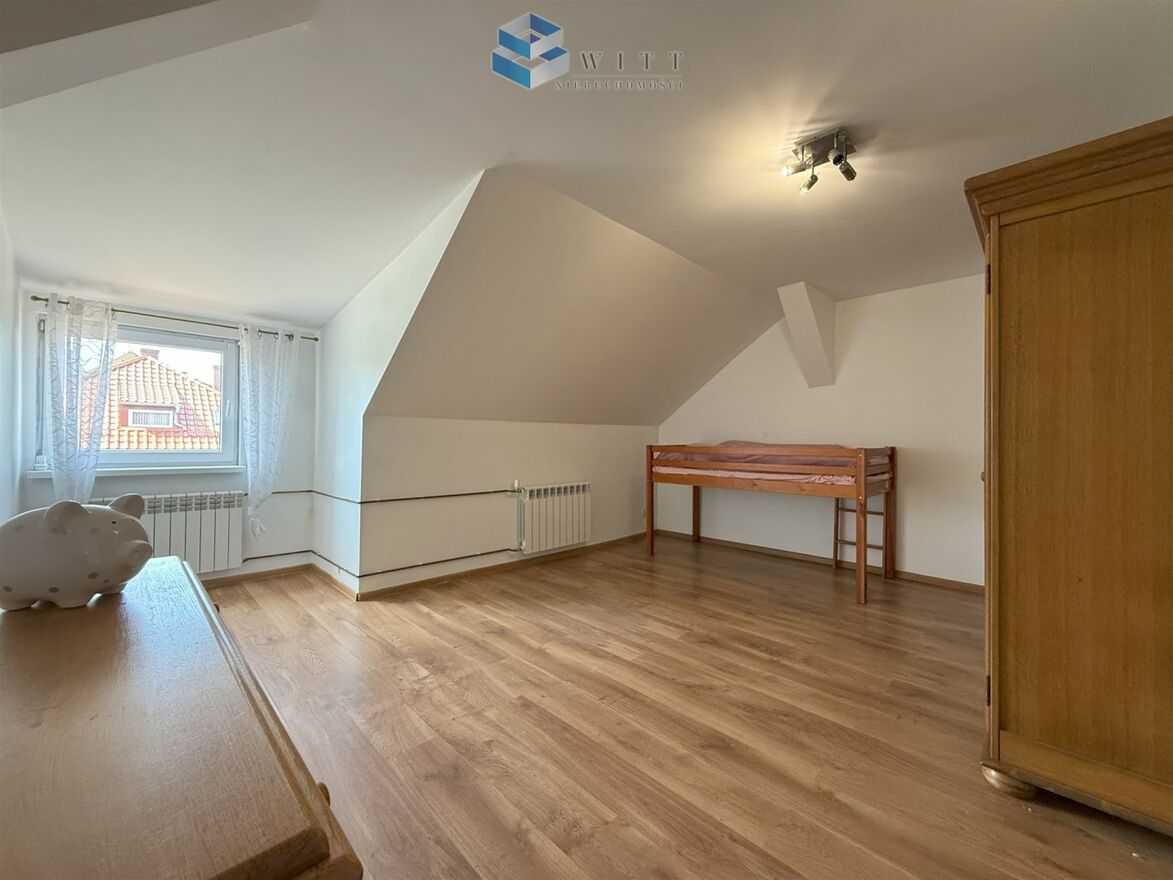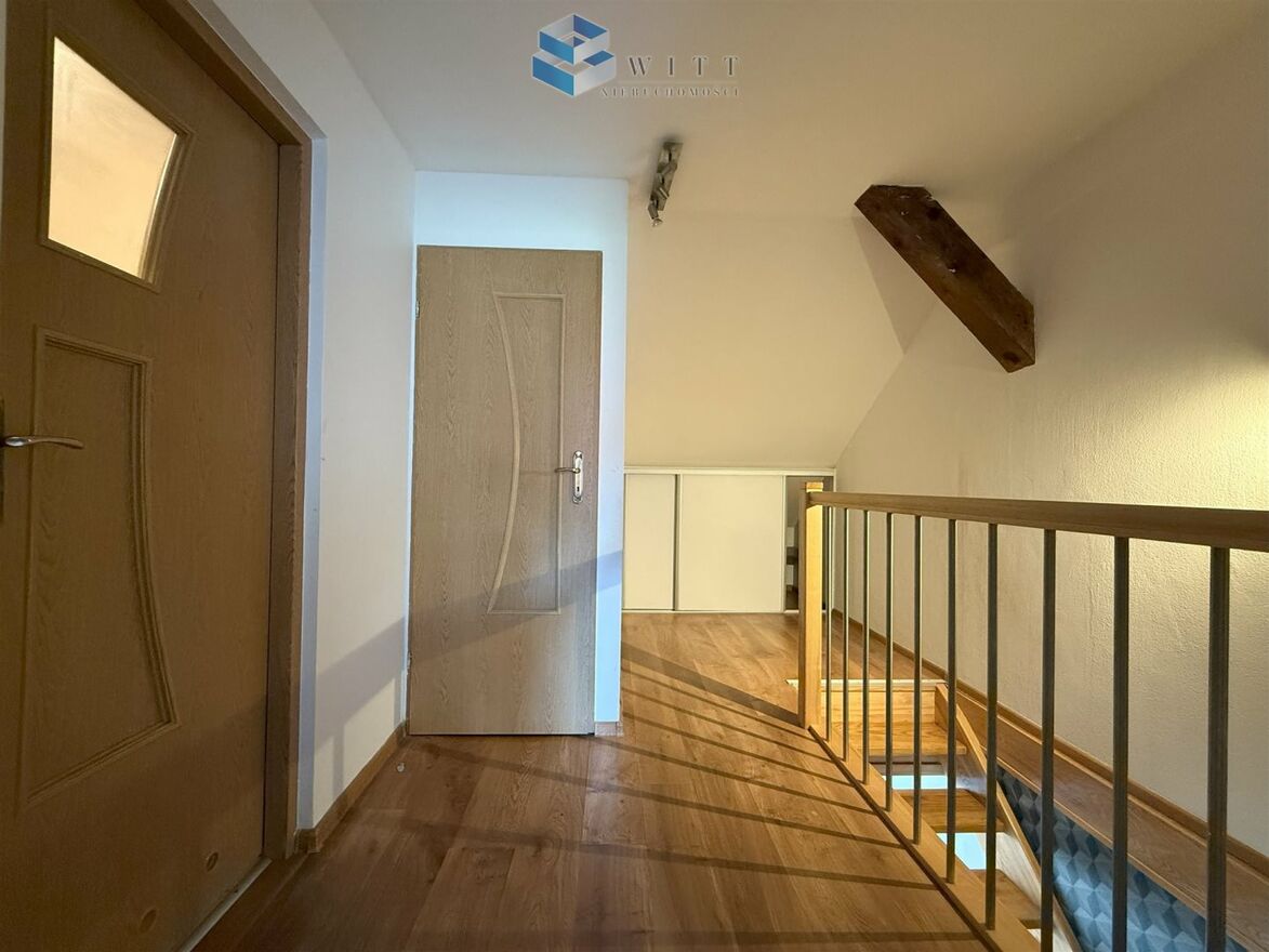 Na piętrze: dwa pokoje oraz zaadaptowany strych pełniący funkcję mieszkalną - to idealna przestrzeń na sypialnię, pracownię lub pokój dla dziecka.